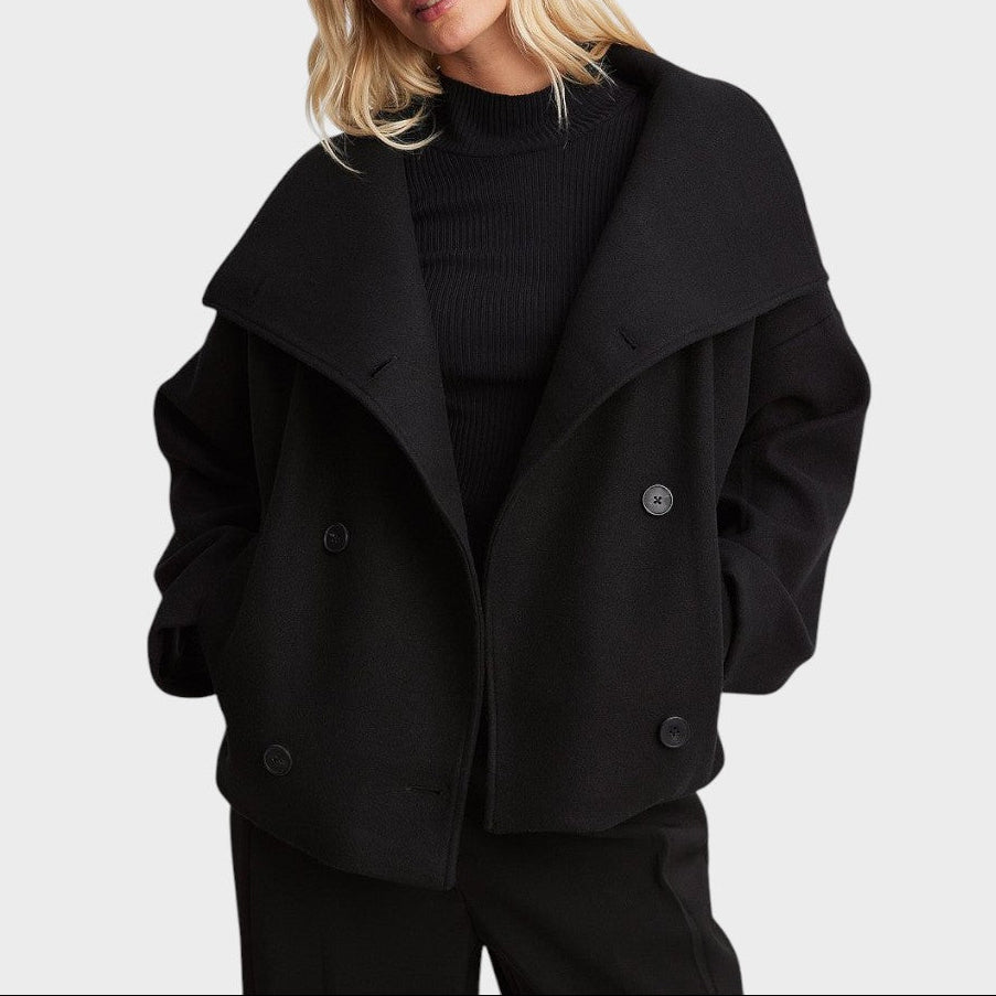Anica je tvoja neizostavna suputnica za prijelazno razdoblje. Sa svojom modernom siluetom, blago skraćenom, i upečatljivim reverom, spaja klasičnu eleganciju s suvremenim dizajnom. Dupli gumbi i ležeran kroj čine je svestranom – bilo da ideš u ured ili se opuštaš u šetnji gradom.