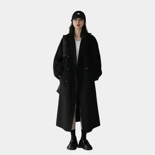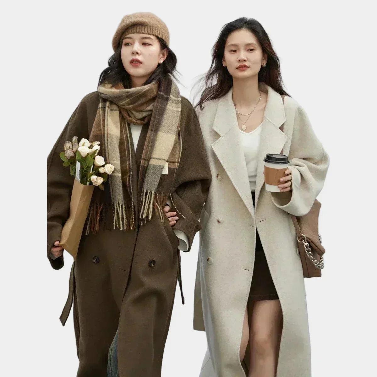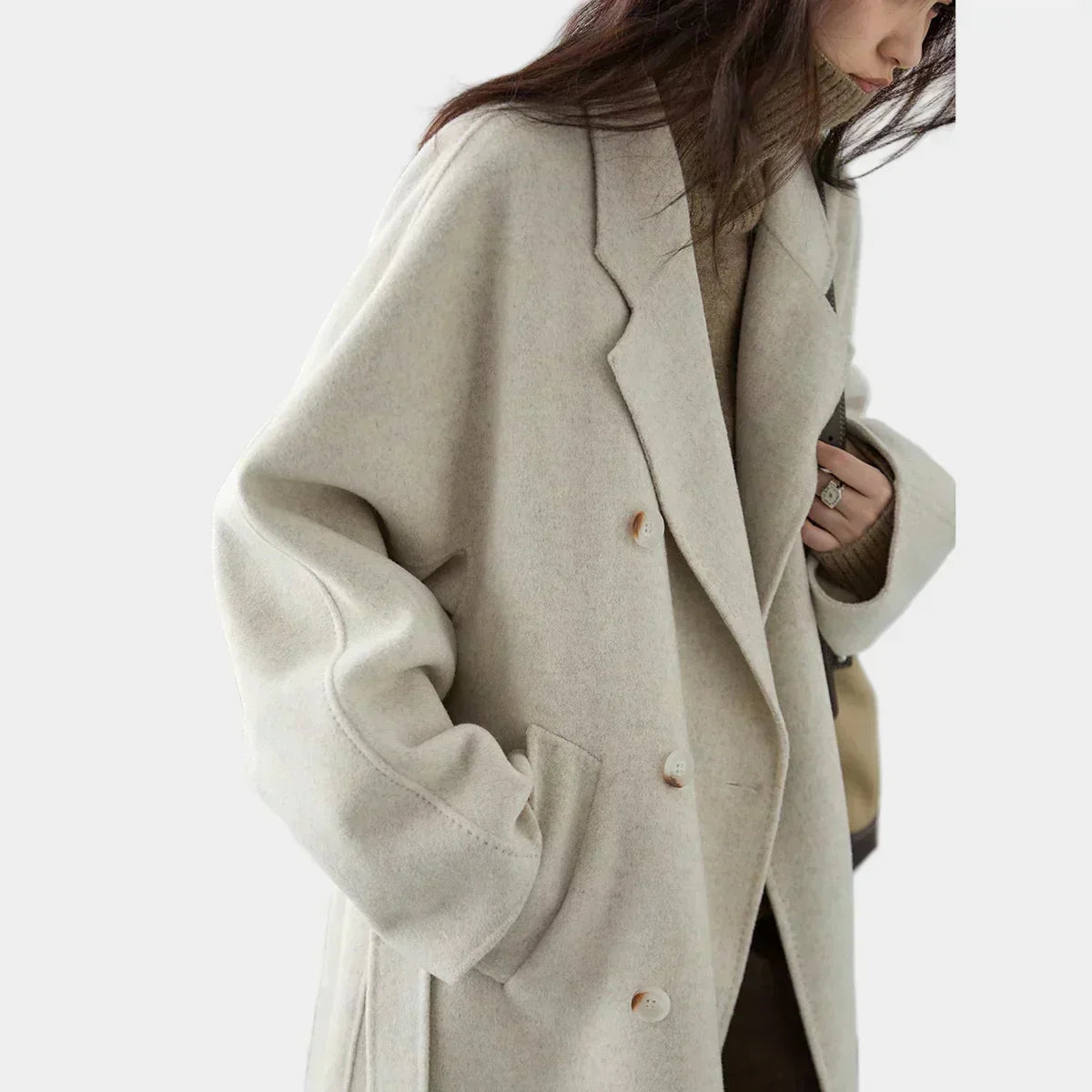 Elegantni dvostruki vuneni kaput s prednjom kopčom i sofisticiranim padajem od Teresa