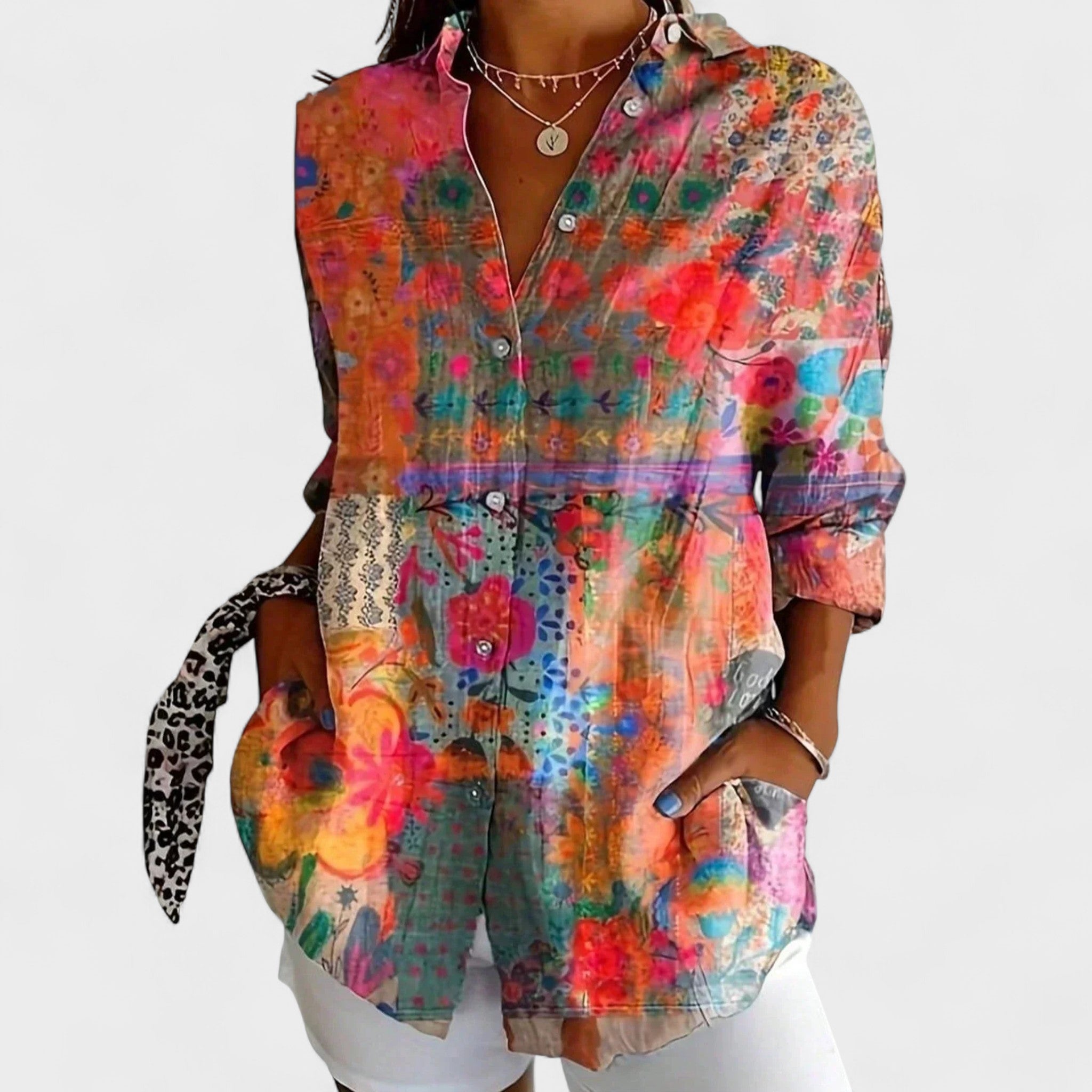 Lagana, moderna i svestrana bluza koja spaja udobnost i eleganciju u svakom detalju. Njezin umjetnički uzorak pretvara i najjednostavniju kombinaciju u outfit pun osobnosti i stila. Savršena je za opuštene trenutke, ali i za prilike kada želite zablistati bez puno truda.