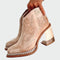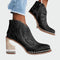 Moderne ženske čizme u western stilu, s posebnim vezivanim uzorcima i dekorativnim detaljima na potplatu. Potpetica od drva s prozirnim dodatkom daje jedinstven karakter i eleganciju, dok udoban kroj čini ove čizme idealnima za stylish izglede od jutra do večeri. Izjava komad koji kombinira udobnost i dinamičan izgled.