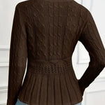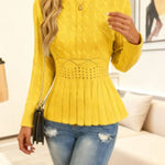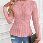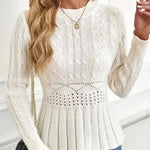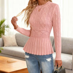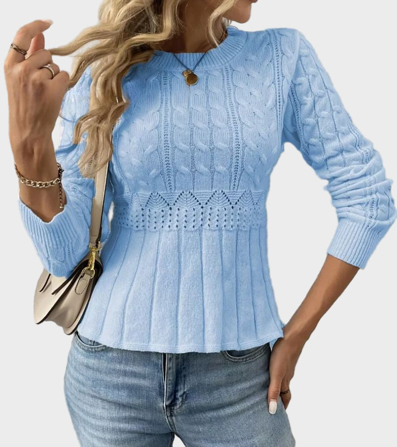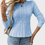 Ovaj elegantni pleteni džemper s peplum rubom savršen je komad za stilski doček hladne sezone.