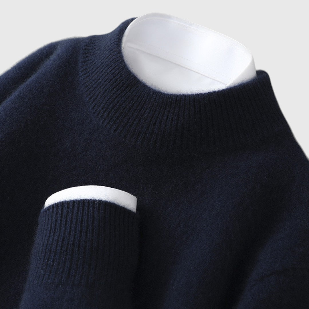 Klasičan mock neck i ribirani završeci stvaraju čist, bezvremenski izgled koji se jednostavno uklapa u sve prilike, od poslovnih do večernjih kombinacija.
