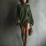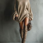 Udobna karamel smeđa pletena mini haljina sa siluetom inspirisanom vintage stilom, savršena za stilsku svakodnevnu upotrebu.
