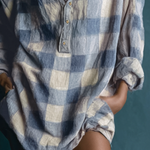 Ženska labava oprana karirana haljina sa Henley ovratnikom i dugim rukavima