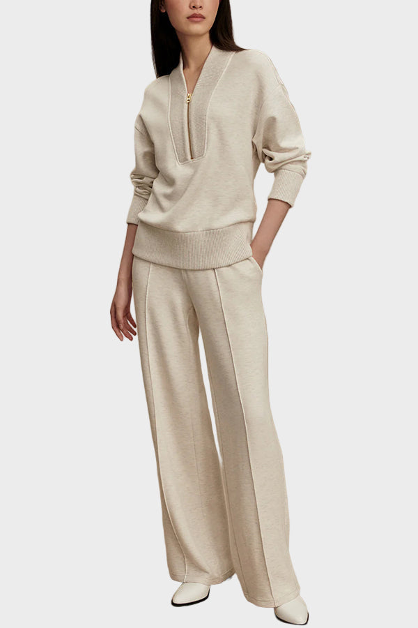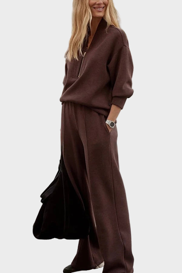 Laskav ženstveni kroj: Nježno oblikovani gornji dio i lepršave hlače stvaraju gracioznu siluetu koja laska vašoj figuri, a istovremeno omogućuje potpunu slobodu kretanja.