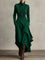 • Kroj: Asimetrična maksi silueta sa visokom kragnom i efektom preklopa.