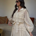 Lexi haljina predstavlja savršen izbor kada želite da se osećate elegantno uz dozu bezbrižne lakoće. Nježno oblikovana silueta prirodno se prilagođava stomaku i kukovima, stvarajući laskavu liniju koja se kreće s vama. Delikatna vezenja i suptilni slojevi dodaju romantičan dodir, dok maxi dužina čini Lexi idealnom za vrtne zabave, odmore ili jednostavno za osećaj lepe i dotjerane svakog dana.