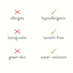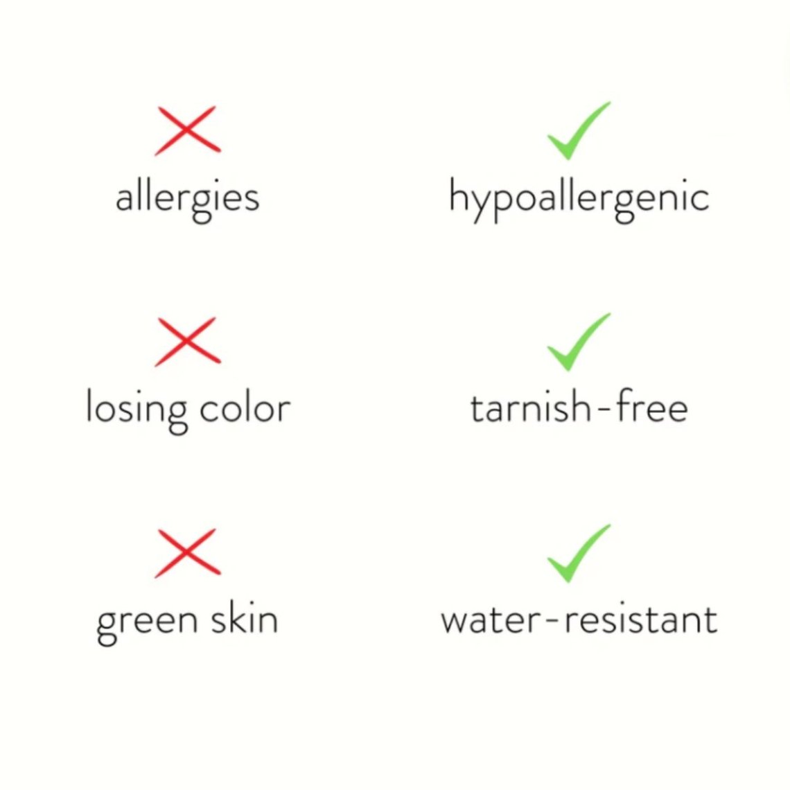 Napravljen od vodootpornog nerđajućeg čelika, nikada više nećete morati da brinete o zelenim prstima, izbleđenom ili oksidiranom nakitu!