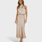 Haljina Alda je počast elegantnoj i samouvjerenoj ženi. Njezina visoka draperija ističe lice i dekolte s dostojanstvom, dok suknja fluidno obavija bokove s suptilnim pokretom. Savršena za vjenčanja, događaje ili večeri kada želite istaknuti s klasom.