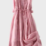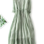 Ova jednostavna i elegantna duga haljina u nježnoj zelenoj nijansi isijava svježinu i prirodnu eleganciju. S laganom siluetom i opuštenim krojem, nježno obavija tijelo i pruža jedinstvenu udobnost u svakom trenutku dana.