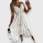 Haljina Fleur spaja bezvremensku eleganciju i ženstvenu rafiniranost, savršena za posebne prigode. Dekolte i nježne čipkaste aplikacije dodaju romantičan dodir haljini, dok geometrijski uzorak donosi modernu notu.