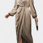 Uđite u eleganciju noći s Giadom, haljinom fluidnog kroja dizajniranom da istakne i očara. S dubokim V-izrezom, mekim napuhanim rukavima i naboranom strukom koja naglašava figuru, Andrea donosi sofisticiranost u svaki pokret. Bočni raskorak dodaje modernu i zavodljivu notu, savršenu za noći koje zahtijevaju nezaboravan stil.
