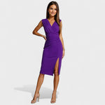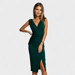Ova haljina savršen je izbor za posebne prilike kada želite zablistati. S profinjenim krojem koji naglašava struk i elegantnim prorezom koji dodaje dozu senzualnosti, idealna je za večernje izlaske, koktel zabave ili svečane događaje. Kombinirajte je s visokim petama i torbicom za potpuni glamurozan izgled.