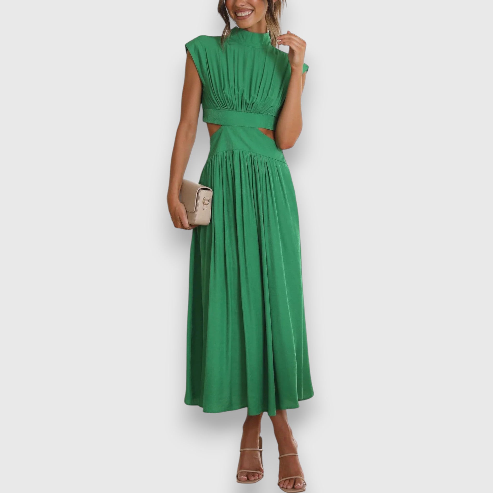 Elegantna maxi haljina Lilli savršen je izbor za stylish večeri. S bezrukavim krojem, visokim ovratnikom i sofisticiranim izrezima u struku, naglašava ženstvene akcenta.