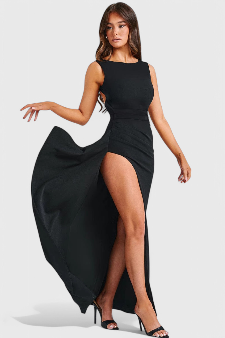 Ivana Haljina od Satena s Otvorenim Leđima i Velikim Razrezom