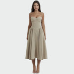 Impresivna i bezvremenska haljina koja obavija siluetu i pruža neodoljivu eleganciju. Prilagodljivi korzet s tankim naramenicama naglašava ženstvenost, dok zračna suknja nudi udobnost i pokret. Idealna za večernje izlaske, elegantne pozive i posebne trenutke.