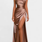 Moderna i sofisticirana, Katarina haljina ističe se svojim skulpturalnim dizajnom i tekućom elegancijom. S halter izrezom koji je uvijen, definiranim strukom i dugom suknjom s bočnim raskorakom, nudi upečatljivu siluetu s obavijajućim pokretom koji privlači sve poglede.