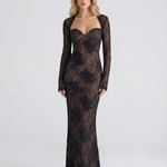 Minimalistička izjava sa senzualnim dodirom. Čipkasta Muza Maxi je dizajnirana sa oblikovanim siluetom inspirisanom korsetskim stilom, prozirnom cvjetnom čipkom i konstrukcijom od dva sloja koja balansira između prozirnosti i pokrivenosti. Odvojive čipkaste rukave omogućavaju vam da pređete sa beznaramenog, elegantnog izgleda na dugosleeve, uzvišeni estetski izgled. Čiste linije, mekana struktura i beznaporno elegancija čine je savršenom za noći koje zahtevaju samopouzdanje bez viška.