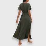 • Klasični kragnasti ovratnik – Dodaje elegantan i stiliziran dodir haljini.