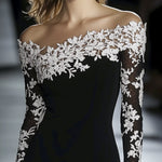 Sofija | Crna haljina otvorenih ramena sa čipkom
