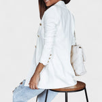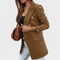 Elegantno strukiran sako s klasičnim reverima i dvorednim kopčanjem podiže svaki outfit — od traperica do poslovnog looka. Produženi, “longline” kroj vizualno izdužuje figuru, dok su diskretno pojačana ramena i džepovi s preklopom zaduženi za profinjenu strukturu i praktičnost. Ugodna, podatna tkanina lijepo pada i zadržava uredan izgled kroz cijeli dan.