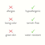 • Hipoalergen, bez olova & bez nikla