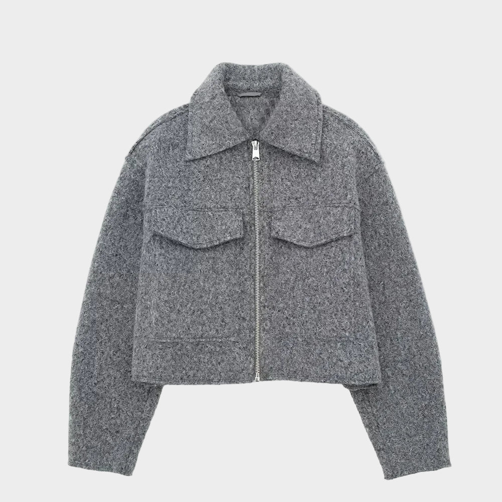 Vintage siva jakna Marta s patentnim zatvaračem i dugačkim rukavima za jedinstveni izgled